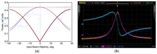 In accordance with the results presented in Figure 3, the required value of ellipticity (Figure 3a) was chosen according to the criterion of maximum sensitivity (Figure 3c), based on the available intensity of laser light and the value of losses on the elements of the optical scheme. As a consequence, the parameters of the linear polarizer (the number of glass plates in a stack) and the light intensity in each cell were determined (see Section 4).
