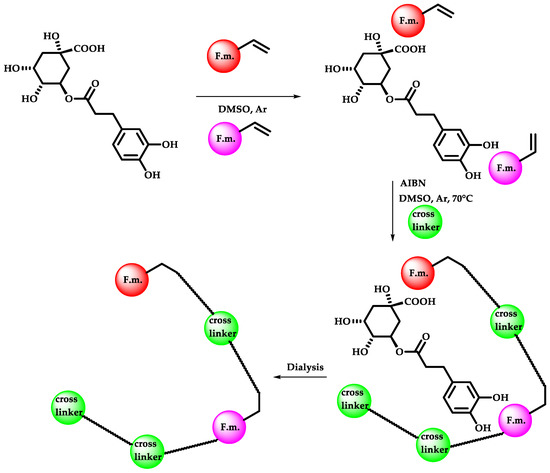 For each polymer, a non-imprinted polymer (fNIP) was also prepared as a control polymer using the same polymerization procedure and the same concentrations of monomers, but without the presence of H-5-CQA as the mimic template.