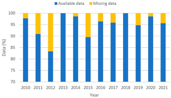 The analysis and the results documented in this study reveal that data imputation using missForest and multivariate missForest can result in not only complete hourly data but also the general trends of the data captured, resulting in better accuracy with the replacement of missing data. The sudden dip in the data for the year 2021, as demonstrated in Figure 9, is due to the characteristics of the reliable data used. If the reliable data statistics are relatively lower or higher than the usual trend, then the same will be carried forward, even after data imputation.