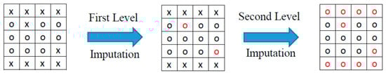 Next, the actual missing data and the unreliable data were imputed in two levels, as demonstrated in Figure 9. In the first level, missing hourly values within available data were imputed using missForest. This completed data was then used to impute the missing days using multivariate missForest in the second level.