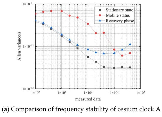 Figure 16 shows a comparison of the frequency stability of the cesium clock in three states: stationary, moving and recovery phases.