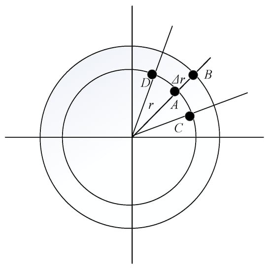In Figure 5, point A represents the point on the circle of radius r. Point B represents the point on the circle of radius . Points C and D represent the point and the points on the circle of radius r, respectively. The difference of gray value between point A and point B is .