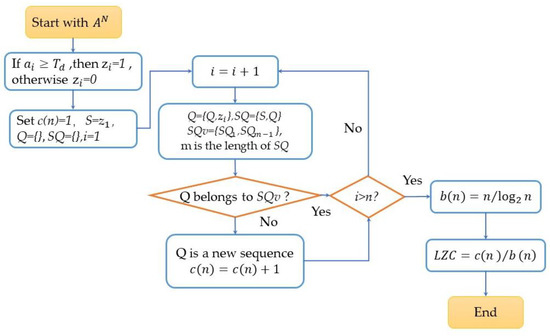 The median of the sequence was taken as . LZC was calculated following the computational flow chart as in Figure 3.