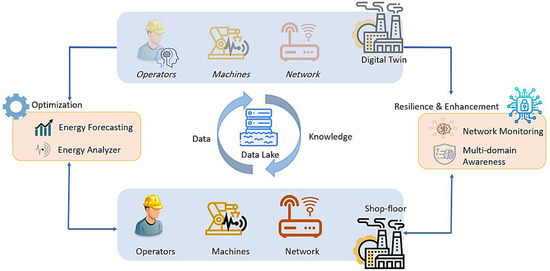 - Bécue, A.; Maia, E.; Feeken, L.; Borchers, P.; Praça, I. A New Concept of Digital Twin Supporting Optimization and Resilience of Factories of the Future. Appl. Sci. 2020, 10, 4482. [Google Scholar] [CrossRef]