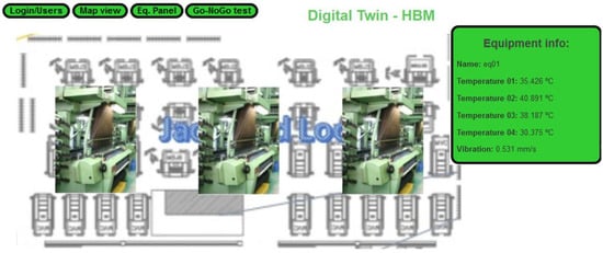 As a prototype, we deployed a partial digital twin of three pieces of equipment that mirrors the equipment state information. The equipment DT visual component is composed of two pages, a map that allows for the selection of equipment and viewing basic information Figure 4, and the equipment panel (Figure 5).