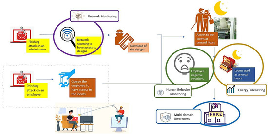 - Wannous, S.; Dias, T.; Maia, E.; Praça, I.; Faria, A.R. Multiple Domain Security Awareness for Factories of the Future. In Proceedings of the Highlights in Practical Applications of Agents, Multi-Agent Systems, and Complex Systems Simulation, the PAAMS Collection, L’Aquila, Italy, 13–15 July 2022; González-Briones, A., Almeida, A., Fernandez, A., El Bolock, A., Durães, D., Jordán, J., Lopes, F., Eds.; Springer International Publishing: Cham, Switzerland, 2022; pp. 29–40. [Google Scholar]