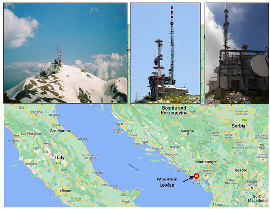 Mountain Lovćen, with peak altitude of 1749 m is located in southwestern Montenegro, near the Adriatic Sea. Geographical location of mountain Lovćen and tower on which measuring equipment is installed are shown in Figure 2. Lightning current measurement equipment was installed on the 88 m high broadcasting tower, one of the most important communications hub in the region. The decision to install measurement equipment on this site was made based on previous reports and on data available from lightning location system (LLS).