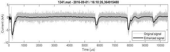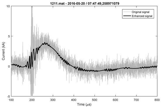 Classification, analysis and parameter determination are more challenging tasks for lightning flashes that consists of more stokes than for lightning flashes with single stroke. Therefore, as an example, a multicomponent lightning flash that consists of four negative strokes is presented in Figure 7. Figure 7 shows the originally measured signal and enhanced signal. Determined parameters that are important for engineering applications are presented in Table 4.