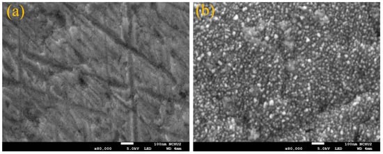 FESEM images of (a) bare Au electrode and (b) nanostructured gold-modified electrode.