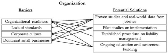 At the organizational level, the decision to adopt any technology is typically affected by factors such as technical–organizational match, organizational structure accommodation, management burden, and organizational culture. Therefore, perspectives from the organizational standpoint are important in exploring the adoption potential of EXOs in the construction industry.