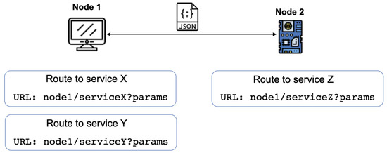 Figure 4 illustrates the interaction model across the nodes involved in our target IoT system. A node can request information from (or send information to) another node by using the appropriate REST method. The communication invocation is performed through a well-formed URL (Uniform Resource Locator) that includes: