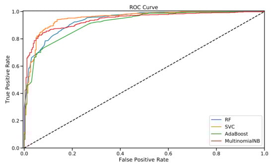 AUC measures the extent to which the classifier is capable of distinguishing between classes [], and it is calculated as follows: