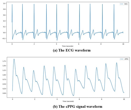 In clinical practice, the two most commonly used HRV analysis methods are electrocardiography (ECG) and contact photoplethysmography (cPPG). ECG is a technique that uses an electrocardiograph to record the changes of electrical activity generated by each cardiac cycle from the body surface. The heart is excited by the pacemaker, atrium, and ventricle, successively, in each cardiac cycle. Along with the changes in the electrocardiogram bioelectricity, various forms of potential changes are drawn from the body surface through the electrocardiograph. ECG is an objective indicator of the occurrence, propagation and recovery of cardiac excitation. cPPG refers to the use of an optical heart rate sensor to emit light of a specific color and wavelength through the luminous LED on the sensor, which is incident into the epidermal skin of specific parts of the human body, and then receive the corresponding reflected light or incident light according to the photosensitive sensor to achieve the purpose of detecting the pulse signal. The signal waveforms obtained by ECG and cPPG technology are shown in Figure 1. Since both ECG and cPPG need to be in contact with the skin surface, the use of these two methods for HRV analysis may be limited. Contact may not always be suitable for applications such as driver pressure detection, behavior sensing, and monitoring for symptoms of sudden cardiac death in neonatal care units, so the use of ECG and cPPG for HRV analysis may be limited. If non-contact HRV analysis is proven to be valid, many applications will be able to benefit.