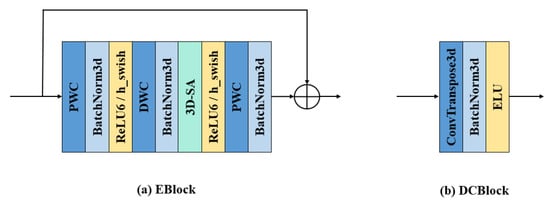 In ESA-rPPGNet, ESA is mainly used to accurately extract the spatiotemporal features from the input video to recover the rPPG signal. It is constructed based on the mobilenet v3 structure [] as a reference. The basic blocks of the network are shown in Figure 11.