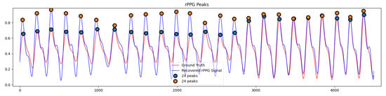 Comparison of peak detection between recovered rPPG signal and ground truth PPG signal.