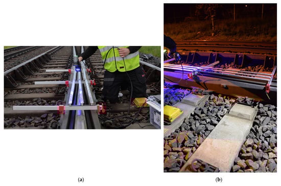 - Liu, X.; Markine, V.L.; Wang, H.; Shevtsov, I.Y. Experimental tools for railway crossing condition monitoring (crossing condition monitoring tools). Measurement 2018, 129, 424–435. [Google Scholar] [CrossRef]