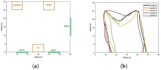 Walking paths in different observation for normal pattern. (a) The living room. (b) Multipaths for one pattern (normal).