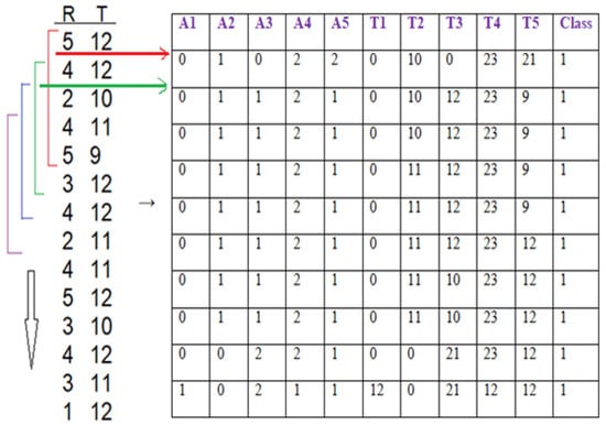 For this experiment, we used a simple Arduino Uno micro-controller to collect the PIR sensor triggers and export it to MATLAB for further processing, the full PIR raw data, and a features data set is uploaded to https://github.com/Ash83GH/Human-Activity-Recognition-Dataset (accessed on 17 December 2021). The stay in the room is computed through the time difference between the two observations ( − ). Where represents the moment when the person enters the room and represents the time they enter the next room. It is assumed that the motion is checked every t, where t is one hour. Maybe a specific stay will overlap with other intervals in the system. For example, if a stay duration in a particular room is 1.5 h, which starts at = 02:00 and finishes at = 03:30, distributed between two intervals, one hour in the interval (2–3) and 30 min in the interval (3–4) []. The second step computes the total stay time in a room during a specific time interval. This total stay is computed using the following equation []: where is the kth stay in room i and is the number of stays in the room i during the time duration from t to .
