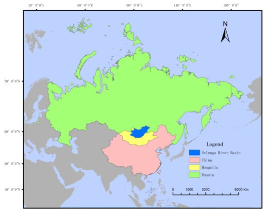 The Selenga River originates from the northern slope of Mount Hangai in Mongolia, flows through northern Mongolia and east-central Russia, and flows into Lake Baikal, Russia, replenishing more than 60% of the lake’s water volume. The Selenga River forms the world’s largest lake delta with an area of nearly 700 km2 at the entrance of the lake []. As the largest tributary of Lake Baikal, it has a total length of 1024 km and a drainage area of 447,060 km2, accounting for 82% of the area of Lake Baikal. In recent years, the amount of water in the Selenga River basin has decreased, and the water level of Lake Baikal has dropped, causing increasing concern about the water environment. As the main upstream river and water source of Lake Baikal, the Selenga River basin is an area that is sensitive to global change, and it is a node of the Sino-Mongolian Economic Corridor, the Russian Eurasian Economic Union, the Mongolian Prairie Road, and the Sino-Mongolian crossborder high-speed rail corridor (Figure 1). The area overlaps with major constructive strategies among major powers and has unique politics and a unique economic geostrategic status. The ecological environmental pattern in this region is complex and diverse, and the interaction between natural processes and human activities has a profound impact on Northeast Asia’s resources, environment and social and economic development. Land use/cover change (LUCC) directly affects the water resource changes in the basin and affects the ecological security of Lake Baikal.