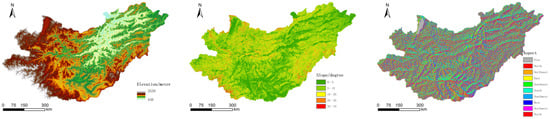 This paper used 90-m DEM data and obtained the corresponding slope and aspect data through Spatial Analyst Tools/Surface/Slope and Aspect in ArcGIS (Figure 5).