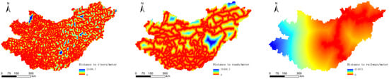 The traffic neighborhood data were obtained by Spatial Analyst Tools/Distance/Euclidean Distance in the ArcGIS platform (Figure 6).