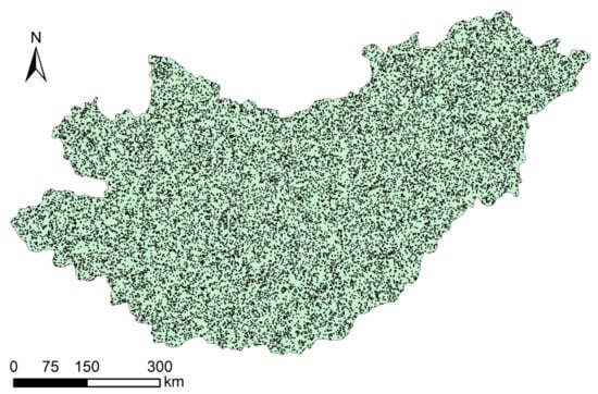 Through the pattern of random sampling, 20,000 sample data points uniformly distributed throughout the study area were selected (Figure 10).