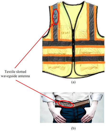 - Sanz-Izquierdo, G.B.; Wu, L.; Batchelor, J.C.; Young, P.R. Textile integrated waveguide slot antenna. In Proceedings of the 2010 IEEE Antennas and Propagation Society International Symposium, Toronto, ON, Canada, 11–17 July 2010. [Google Scholar]