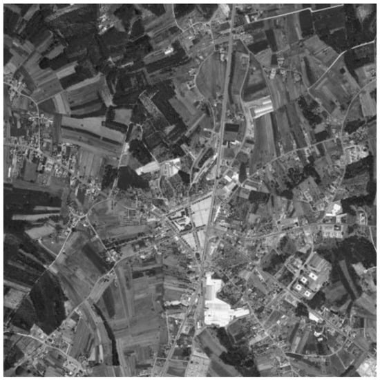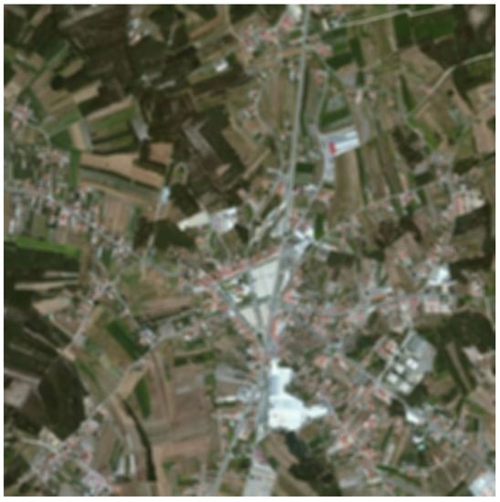 For the experiments, a set of photos in PNG format, taken by the satellite from the Bing maps [], has been used. The creator of this collection divided the data into categories such as land and water. Our experiments were focused only on a part with land-based images containing 1078 images. This collection includes good-quality panchromatic photos. Based on this collection, two image sets were prepared. The first was the result of saving color photos in grayscale, representing high-quality panchromatic photos. The second contained multispectral color photos with reduced quality due to the use of a blurring mask.