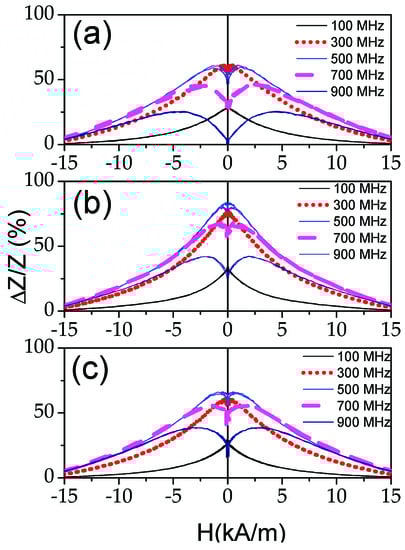 Usually the GMI effect is expressed in terms of the GMI ratio, ΔZ/Z, defined as [19,20,21,22]: