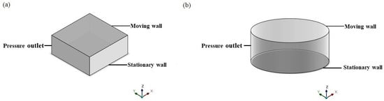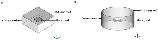 First, the simple model with finite size only is built. The physical geometries of two shape structures in the simulation are shown in Figure 2. The main parameters set in the simulation are shown in Table 1. Taking the rectangular plate as an example, the upper face in the z-direction is set to a stationary wall, while the lower face serves as a moving plate with constant velocity. Besides, the four faces around are set to pressure-outlet regarding the trivial boundary, in which case the pressure is forced to zero in the boundary of the plate. The solid part inside represents the air between the wall and plate.