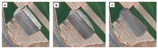 The UAV was a custom-designed multicopter (Figure 9b) instrumented with a RedEdge 3 (Micasense, Seattle, WA, USA) VNIR multispectral camera (with five bands: 475; 560; 668; 717; and 840 nm) and a microbolometer uncooled Vue Pro R (FLIR, Portland, OR, USA) TIR camera (7.5–13.5 µm). The flights with the unmanned platform were performed at a typical altitude of 50 m which led to a spatial resolution of 3.4 cm for the Micasense camera and 6.5 cm for the FLIR camera.