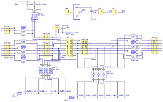 As part of the research work, an electronic commutator system was created. The schematic diagrams in Figure 16, Figure 17 and Figure 18 show the elements of the electronic commutator bridge and their connections. Figure 18 shows the control elements of the DC/DC converter.
