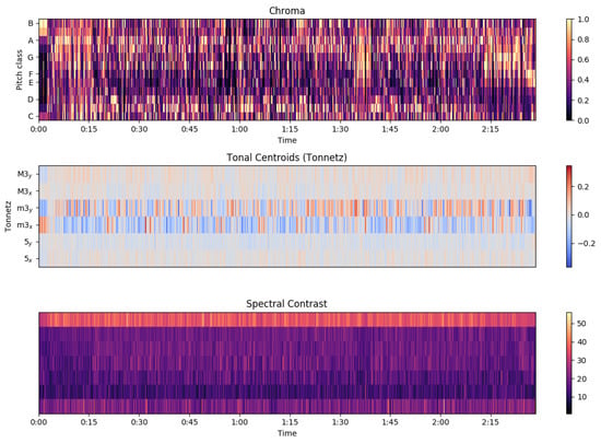 In order to achieve an effective audio analysis, we have to adopt some methods [24,25,26,27,28] from the field of Digital Signal Processing, which make feasible the extraction of features with the desired information. To extract information related to emotion from the audio signal of a musical track, we used the following features: