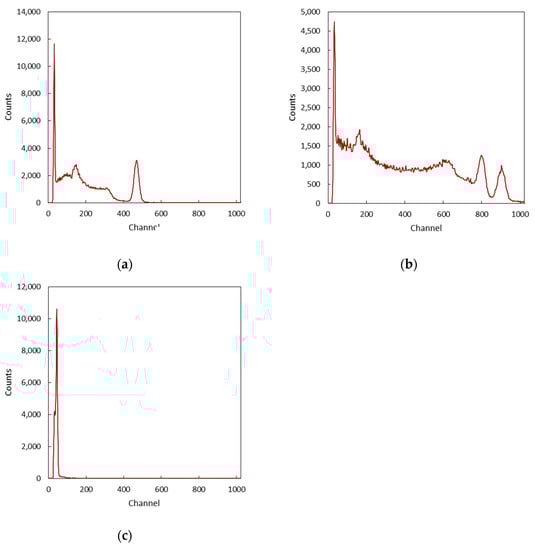 Although there are different radiation detection technologies available, scintillation detectors are the ones that offer high detection efficiency in a small active volume with a reduced economic effort [,]. Following the interaction with ionizing radiation, scintillators emit visible or ultraviolet light pulses. Such pulses can be converted into electrical signals by low-level light detectors, such as photodiodes, photomultiplier tubes, avalanche photodiodes, or silicon photomultipliers (SiPMs). By collecting the histogram of the light pulses, the energy spectrum of a gamma-ray field can be measured in a process called scintillation spectroscopy.
