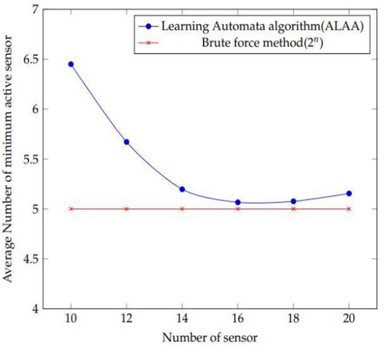Figure 14 depicts the outcomes of the experiment. As can be seen, the results achieved using the brute force technique (2 n) and the suggested learning automata algorithm (ALAA) method are similar.
