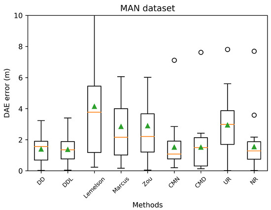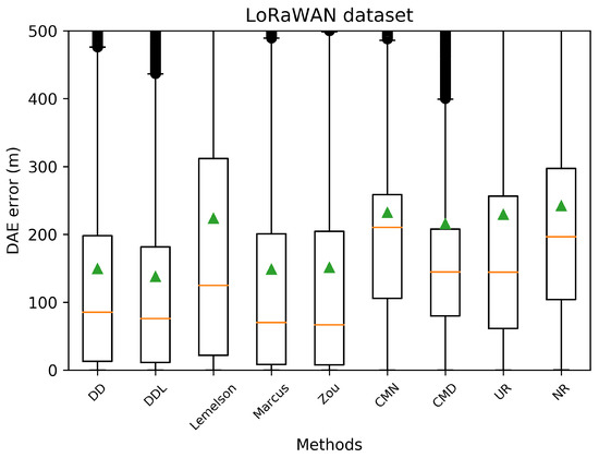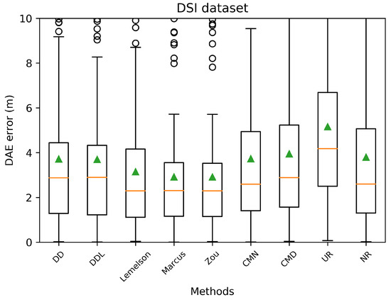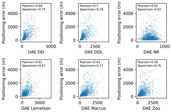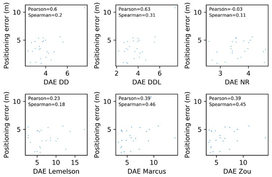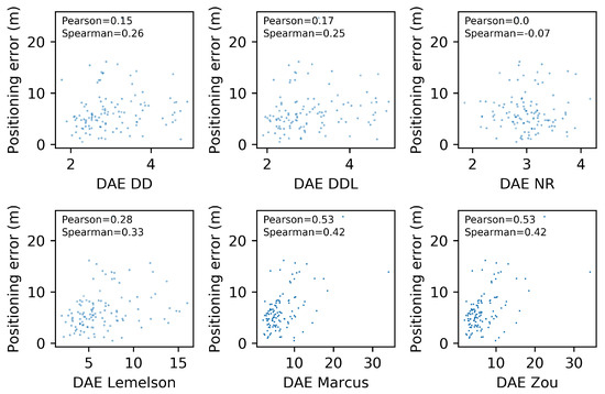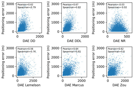 - DAE uniform random (): A randomly sampled value from a uniform distribution in the range between zero and the mean positioning error in a previously unseen set is assigned to characterize the DAE of each estimate;