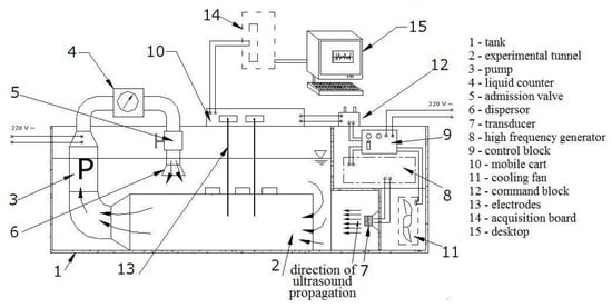 The installation used for this experiment was built for the study in stationary and circulating liquids. It has the following main components (in the brackets, we refer to the numbers from Figure 1) []: