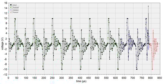 Comparing the performances of the artificial intelligence-based models on the test sets (relevant for how well the model learns the data and can use it), the best model is WANN, no matter what indicator is considered. This is confirmed by comparing Figure 8 and Figure 11 that show the forecast for 48 μs.