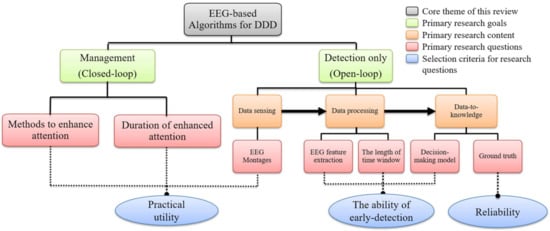 The open-loop and closed-loop problems relating to the field of EEG-based DDD algorithms can be organized into a taxonomy, as shown in Figure 2. The components of this taxonomy are briefly discussed below: