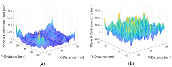 Error contours of each calibration plane: (a) Plane A; (b) Plane B.