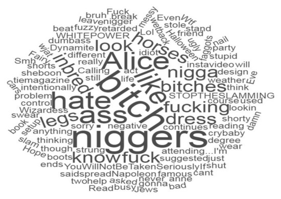In this work, cyberbullying is chosen as an instance for a case study. “Cyberbullying” or cyber-harassment refers to an individual’s offending behavior towards another person through the internet, mainly using social media sites. The bullying behavior may include posting rumors, threats, sexual remarks, a victims’ personal or sensitive information, or harsh labels such as hate speech []. Legally, bullying, or harassing behavior is identified by the offender’s repeated behavior and an intent to hurt [].