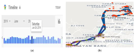 (a) Timeline of places visited by subjects. (b) Raw geographic data.