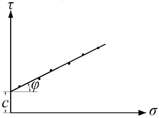 Generally, the parameters in Equation (4) are determined based on the Figure 5, where the black dots represent the peak shear resistance and the straight line is fitted to the black dots. Obviously, the coordinate (σ, τ) of the intersection point between the straight line and τ-axial is (0, c), i.e., τ(0) = c. In order to obtain a time-dependent cohesion force c, let the σ in the Equation (2) be zero and shear stress τ will be the function of the shear displacement s and time t without the compressive stress σ, i.e., c(s, t) = τ(s, 0, t). Since shear displacement s = vt and shear velocity v is constant, c is only the function of time t, i.e., c = c(t).