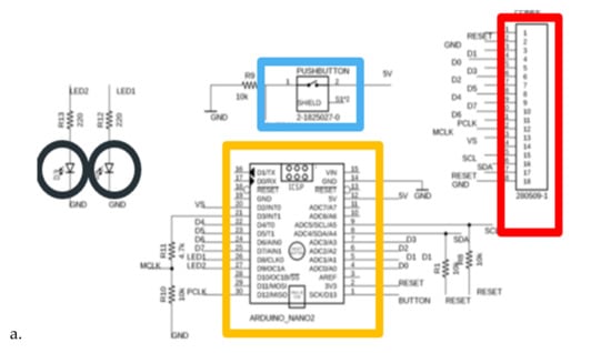 Figure 2a illustrates the connection of the OV7670 camera module to the Atmega328P microcontroller.