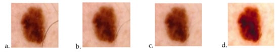 - Nachbar, F.; Stolz, W.; Merkle, T.; Cognetta, A.B.; Vogt, T.; Landthaler, M.; Bilek, P.; Braun-Falco, O.; Plewig, G. The ABCD rule of dermatoscopy. J. Am. Acad. Dermatol. 1994, 30, 551–559. [Google Scholar] [CrossRef] [Green Version]