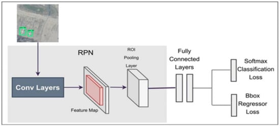 We divide the dataset into training and testing parts and check the results on testing part for validation [64,65,66,67]. For detection, Faster RCNN uses a combination of RPN and Fast RCNN with shared convolutional features. Both Fast RCNN and RPN train independently and share convolutional layers in different ways. Therefore, they develop a new technique, which shares the convolutional layers between two RPN and fast RCNN networks rather than training separately (Figure 10). The ROI [68,69,70] layer is responsible for prediction of bounding boxes with acceptance of convolutional features. Faster RCNN takes 1000 × 600 resolution images as input for detection, but its detection time is slow and accuracy is high rather than YOLO and SSD [71,72,73].