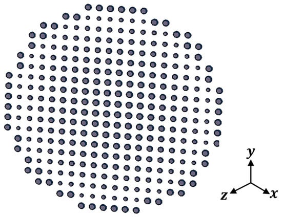 Simulation layout of the reflecting elements for the broadside pencil beam pattern.