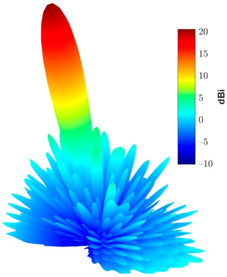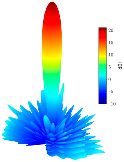 By comparison, for the case of a shaped beam, such as a flat-top beam, it is required to determine the required phase distribution using an optimization algorithm because it cannot be determined directly using Equations (1)–(4), as in the case of broadside or tilted pencil beams. However, the phase distribution of the broadside pencil beam can be considered as a good starting point for the proposed optimization process to obtain the corresponding phase distribution for the flat-top beam.