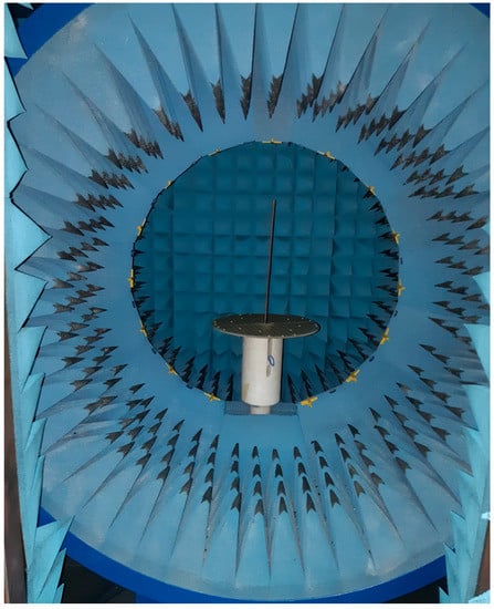 Fabricated antenna inside the anechoic chamber for the radiation pattern measurement.