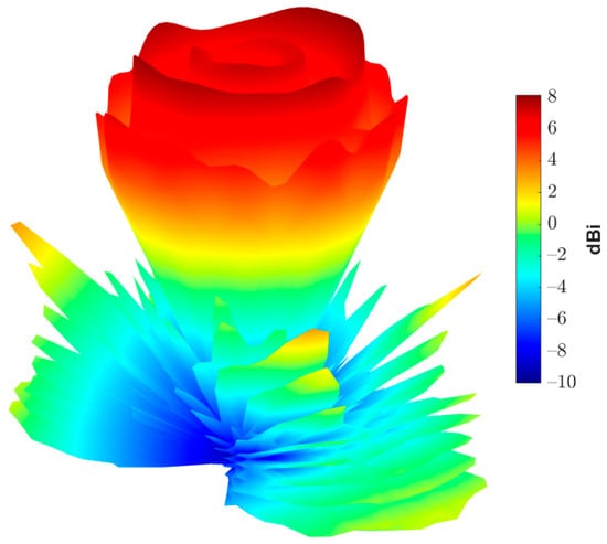 Three-dimensional radiation pattern of the proposed reflectarray antenna.